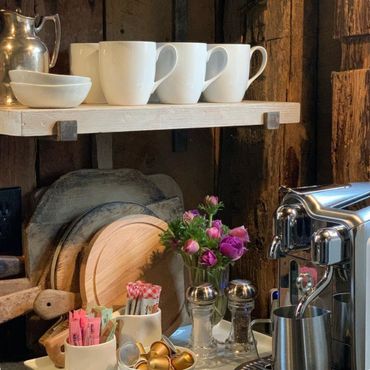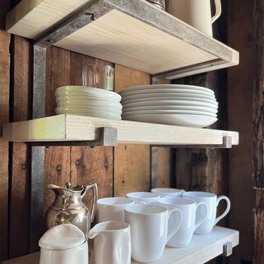 Refrigerator with ice maker, gas cooktop and range, microwave, dishwasher, and Breville espresso machine. Includes all cooking utensils, dishes, serving boards, platters, and barware. Dining room seats 6.